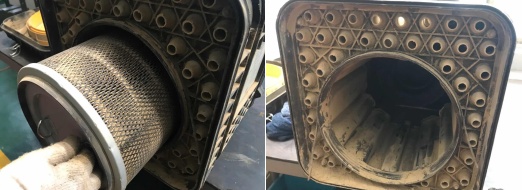3、清洁大气空气燃油滤清器器两旁的排灰阀,排出底下的积灰。用气枪清洁燃油滤清器时,要沿燃油滤清器内测向外面清洁,切没法由外部内吹(气枪重压在0.2MPa),请特别注意:燃油滤清器在清洁六次后应开展更新。
